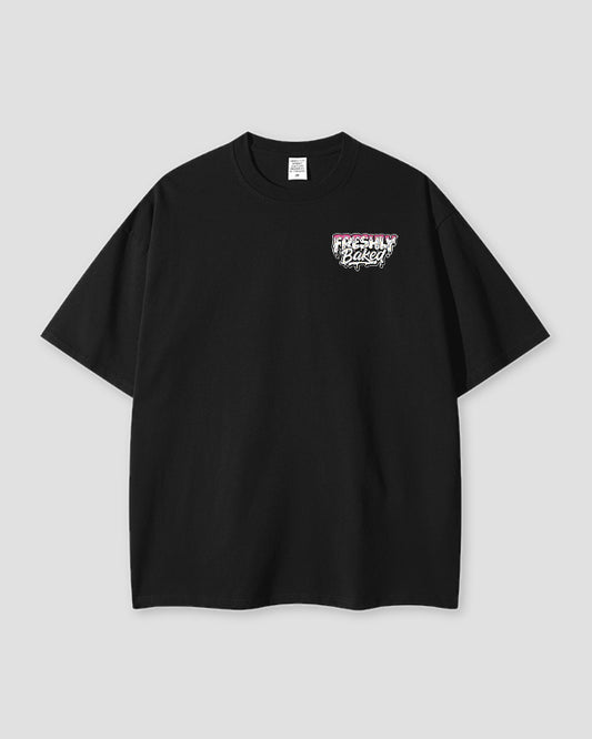 Black Acid Washed Oversized Freshly Baked Logo Tee