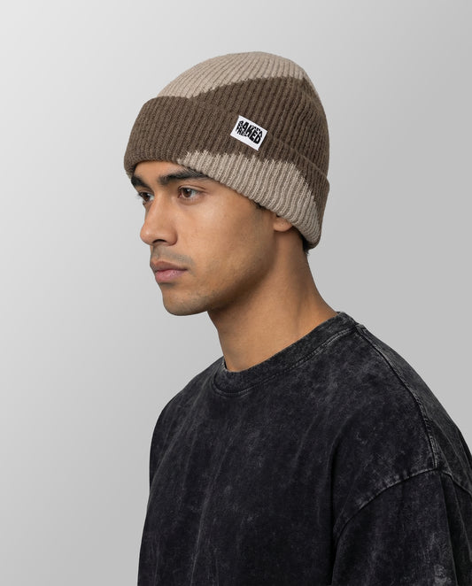 Oversized Wave Beanie Hat - Brown